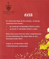 Les citoyennes et citoyens de la commune d'Icogne sont invités à participer à l'Assemblée Primaire qui aura lieu le lundi 7 décembre 2009 à la Salle Bourgeoisiale à 20h00.