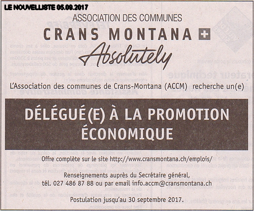 L’Association des Communes de Crans-Montana (ACCM) met au concours le poste suivant